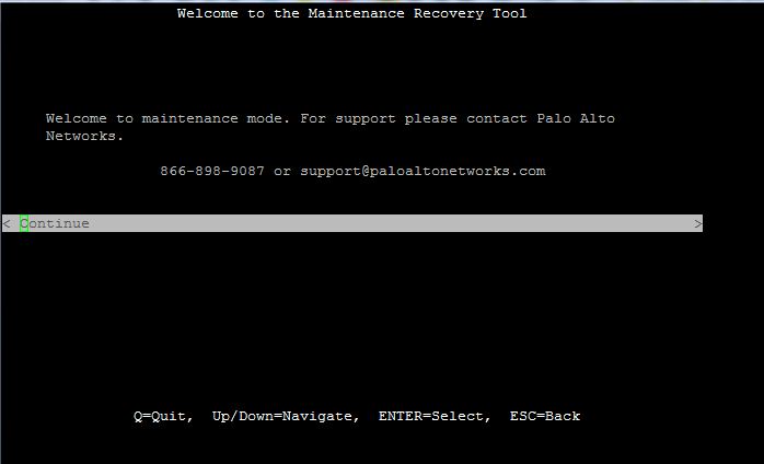 If the device boots into maintenance mode continuously, reverting or reinstalling PAN-OS may fix the issue. This document describes how to revert or reinstall PAN-OS from maintenance mode.